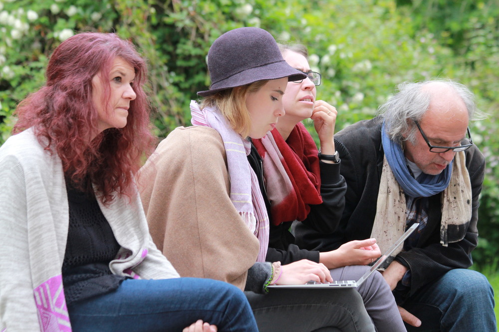Von Mitte Februar bis Anfang Juni trafen wir uns wöchentlich zu Meetings, Erfahrungsaustausch, Kennenlernen, Ausflügen und dem Versuch, ein Stück zu erarbeiten. Die Proben betrafen vor allem die körperliche und seelische Arbeit eines Schauspielers, dem Gruppenzusammenführen und langsam aber sicher auch einer Stückentwicklung. Zwei Wochen vor der Premiere waren wir dann täglich zusammen, stundenlang. Eine Szene nach der anderen wurde entwickelt und verworfen, neu gestaltet und weiter entwickelt – total lebendig und auch sehr spannend, so ein Prozess. Johannes Flaschberger und Michael Kuglitsch verloren aus irgendeinem Grund nie die Nerven. Das babylonische Sprachgewirr war groß. Arabisch, Englisch, Kurdisch, Deutsch waren unsere Arbeitssprachen. Unendlich viel Übersetzung war nötig, damit auch wirklich jeder und jede verstand, worum es ging.