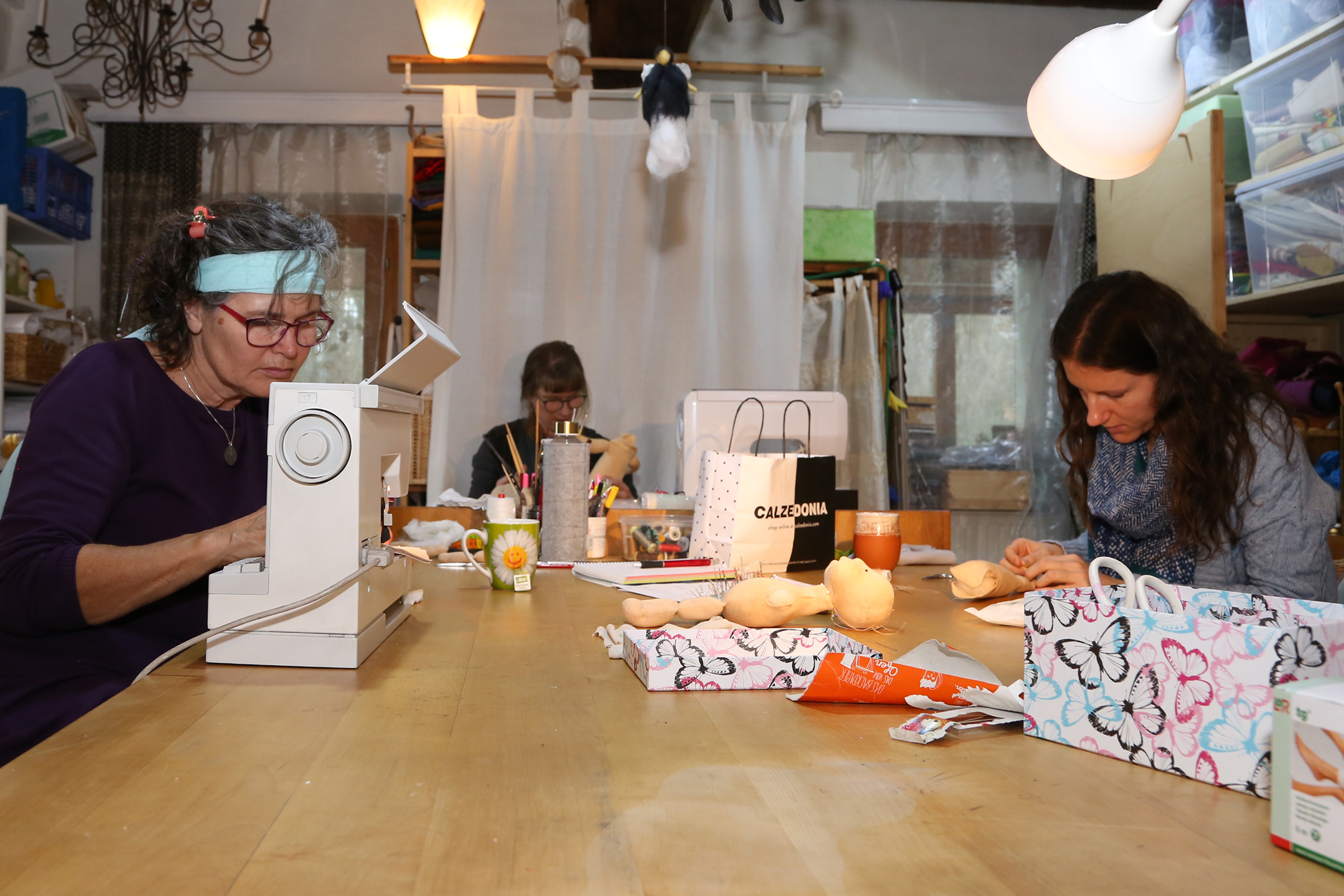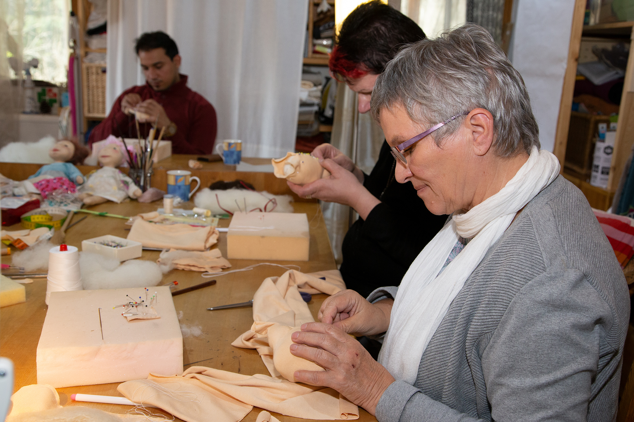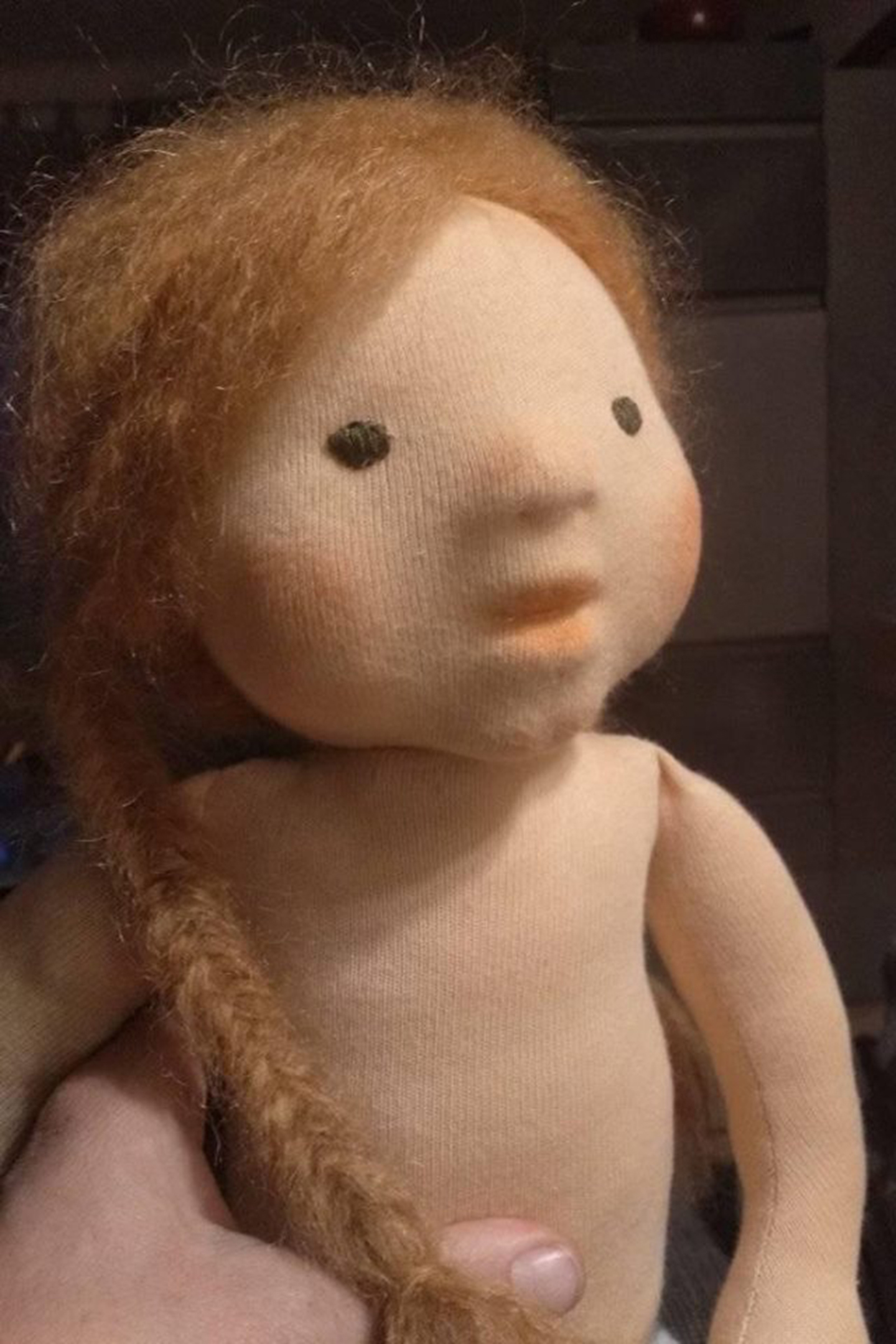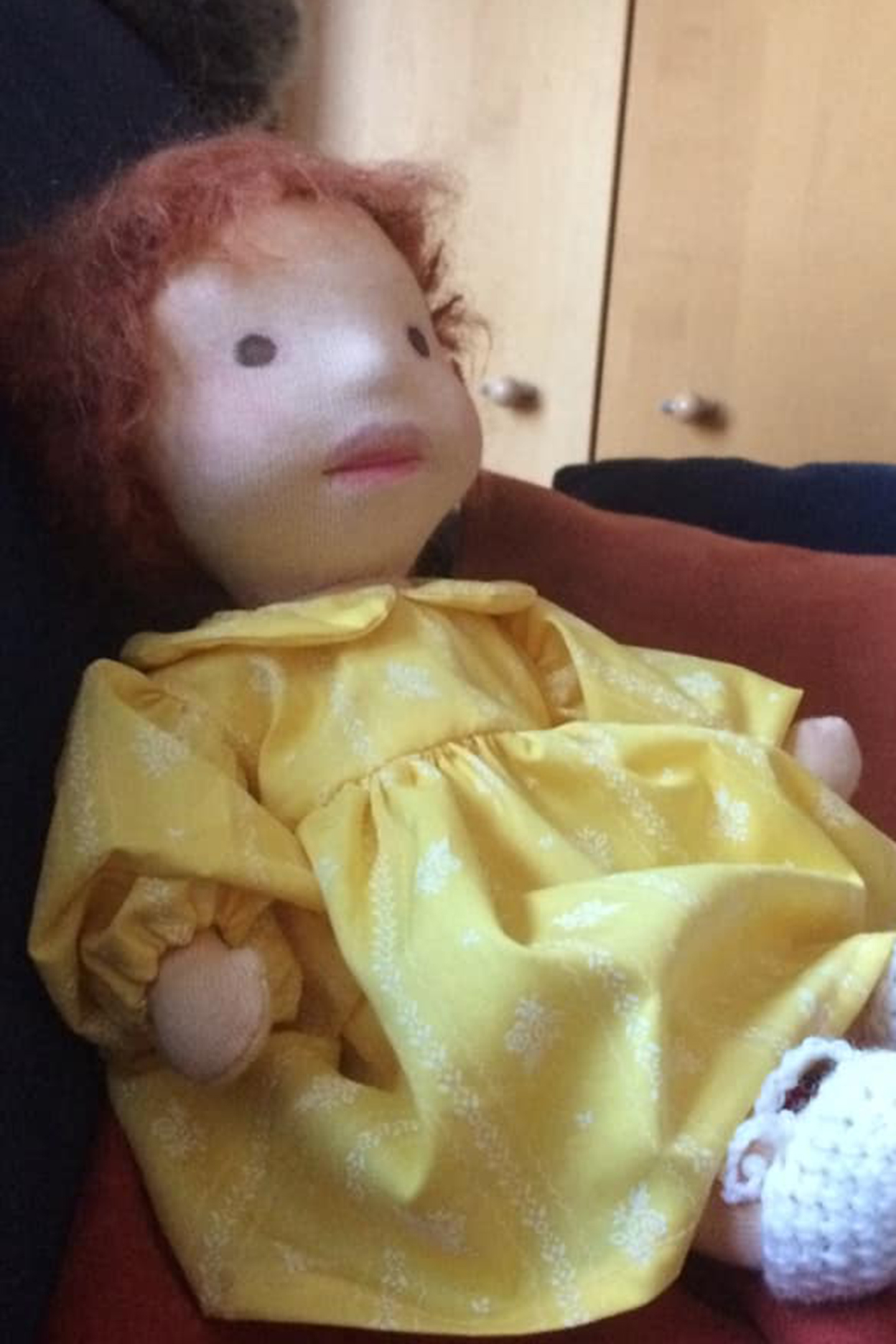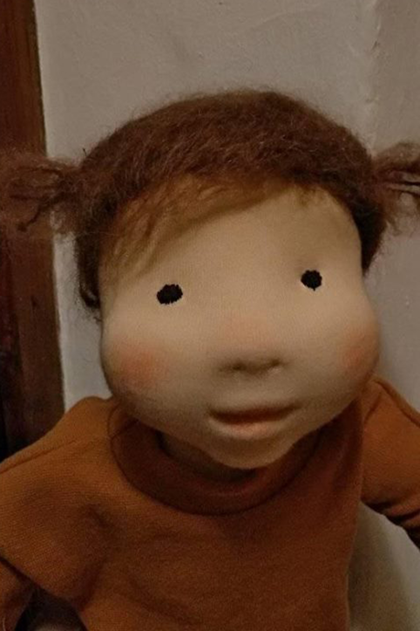 Genau. Alles hinzuschmeißen. Meine geliebte Lieblingsstrategie. Liebe Puppen, es war sehr schön. Es hat mich sehr gefreut. Dieses Mal, dieses Mal ist es anders. Drei Kurse mit sechs wunderbaren Frauen und einem wunderbaren Mann mit dem Lehren einfacher Puppen nach Waldorf-Art liegen hinter mir. Sie sind alle bezaubernd geworden, jede einzelne. Und ich weiß, dass bereits neue Wesen entstehen. Puppen machen ist hoch ansteckend. Jede Woche arbeite ich zusätzlich mit einem Dreamteam und Sechs- bis Zehnjährigen an Filzraben, an Paperclay-Köpfen für Handpuppen. Das Lernen löst bei mir Lernen aus. So gut wie täglich übersetze ich Seiten des genialen Buches „Anatomy of a Doll“. Es fühlt sich an wie ein Selbststudium, Puppenmachen und brushing up my English. Im Grunde lerne ich erst jetzt kennen, was sich hinter dieser Kunstform des Puppenmachens verbirgt. Die von mir so geschätzte Villacher Puppenmacherin Elli Riehl hat nicht umsonst großen Eindruck bei der kleinen Lisa hinterlassen. Elli Riehl war eine Künstlerin, durch und durch. Fotografierte Gesichter und Bewegungen im Geist ab und modellierte sie daheim mit Nadel und Faden in Flanell und Baumwollwatte. Im amerikanischen Buch tauchen ähnliche Puppen auf, hier spricht die Autorin vom „needlesculpting“, was ich frei als „mit der Nadel modellieren“ übersetzen würde. Und nein, nicht mit Filznadeln, das ist wieder eine andere Technik.