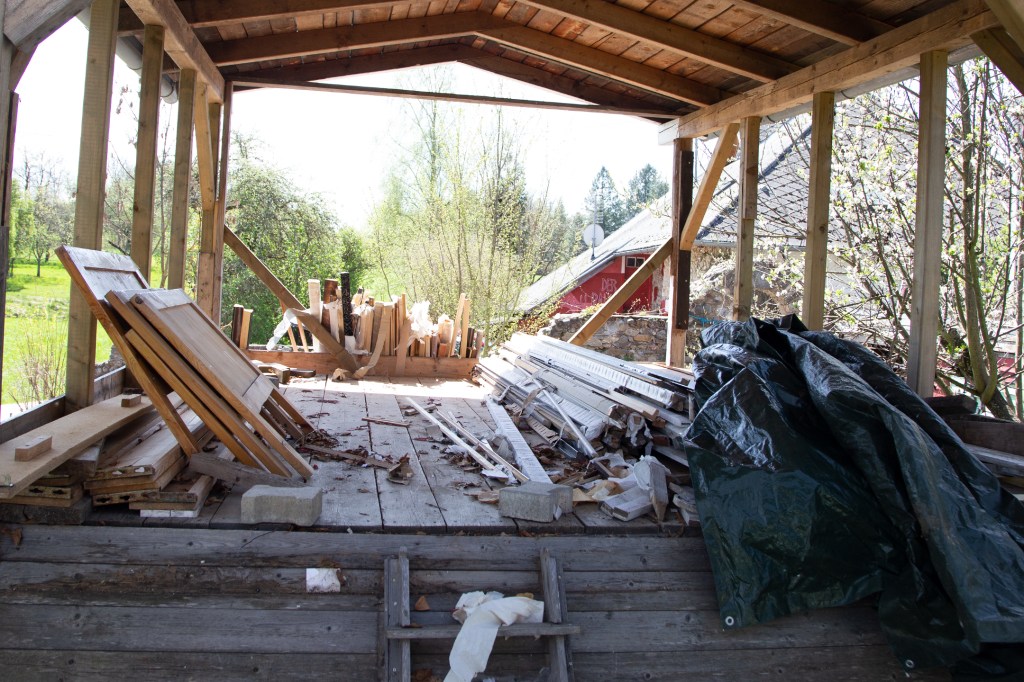 Nebenbei geschieht still und leise Frühling und Frühsommer. Ich übersiedle täglich Teile meines Lebensmittelpunktes in meinen Wohnwagen, der derzeit vor allem Studio und lichtdurchfluteter Arbeitsplatz ist. Möglicherweise schaffen wir heuer den Um- und Ausbau meines Außenstudios nebenan, von dem ich träume. Wir. Ich will ehrlich sein. Alexander und Sami schuften, damit der angeräumte Raum wieder leer wird. Der Raum wird später hauptsächlich aus gesammelten Fenstern und Glastüren bestehen. Schwedenrot für den Außenanstrich, ganz hell und sparsam eingerichtet innen. Herzklopfen auch hier.