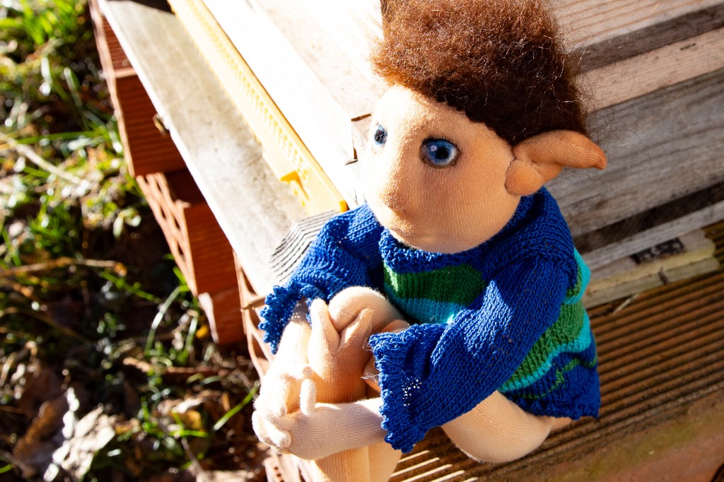 Finn ist sehr geduldig mit mir. Ich langweile euch jetzt nicht mit handwerklichen Details. Nur so viel, dass ich euch verrate, dass an ihm fast alles anders und neu ist. Und dass er der Auslöser ist, mich noch mehr ins Filzen zu vertiefen. Es liegt mir einfach mehr, nur mit Wolle zu arbeiten. Ganz ohne Stoffüberzug. Sage ich jetzt einfach mal so. Das ändert sich eh wieder. Ich kenne mich.