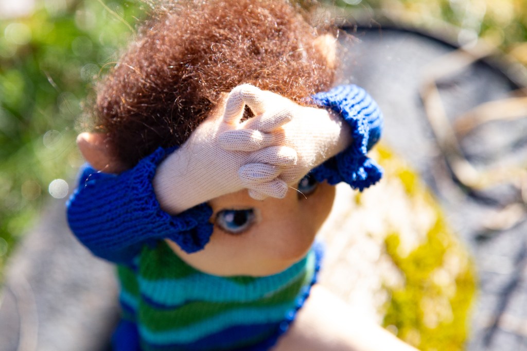 Irgendwann nach dem Vierzundzwanzigsten ist es mir zu viel, herumzusitzen und meiner bezaubernden Enkelin und ihrer Mama, meiner Tochter, und Sami beim Spielen zuzuschauen. Heuer schaffen wir es, dass wir alle mehr oder weniger fiebrig herumsitzen und Weihnachten bis Silvester verlängern. Ein russisches Tutorial fesselt mich zu diesem Zeitpunkt besonders. Ich verstehe kein Wort. Bin aber mittlerweile so tief in den Prozess des Machens eingedrungen, dass ich mir die Handgriffe selbst erklären kann. Jedenfalls genügend, um selbst auszuprobieren, was ich russisch besprochen sehe. Habe ich schon mal gesagt, dass die russischen Puppenmacher*innen ein Traum sind? Jana, das ist die Enkelin, erklärt mir beim Filzen und Sticheln, dass ich den Mond mache. Wie recht sie hat. Sie staunt, als ich einen meiner nicht mehr ganz sooo passenden Bikinis zerschneide und zu einem Kopf zusammen nähe. Tja, Upcycling beziehungsweise ReUse as usual, ich brauche mich nur durch meine japanisch sortierten Kisten zu wühlen. Jana schaut sich den Kopf ganz genau an, von allen Seiten. Ganz, ganz leise regt sich in mir die Hoffnung, dass sie dieses Interesse beibehalten wird. Ich hätte ihr so viel zu zeigen, sobald sie es ausprobieren will…