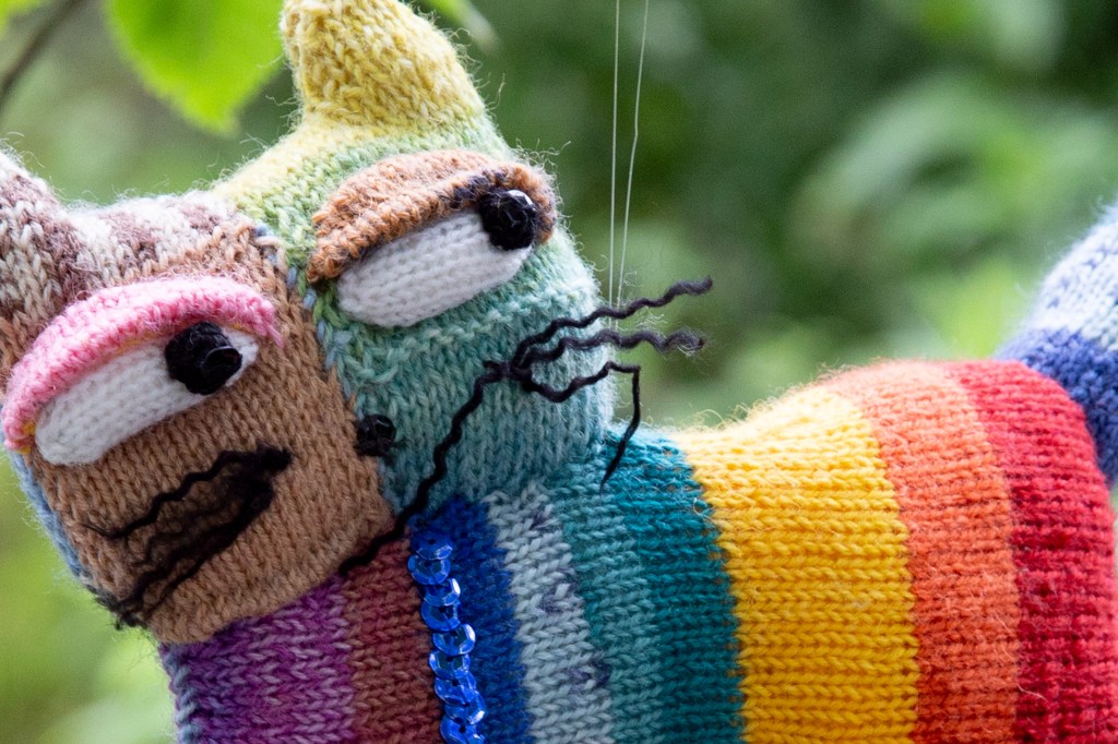 Meine bunte Regenbogen-Katze hat es nicht (mehr) in den Shop geschafft. Sie wurde im halbfertigen Zustand reserviert und wohnt mittlerweile in Graz. Ich widme ihr hier ein paar Zeilen der Nachbetrachtung. Angefangen hat ihre Entstehung mit dem #regenbogenkal2020 einer begnadeten Wiener Strickerin. Durchaus auch gesellschaftspolitisch motiviert tummeln sich auf ihrer Plattform Frauen und Männer, die tolle Strick- und Häkelprojekte umsetzen. Eine wie ich, die grad mal mit Ach und Krach einfachste Strickleistungen hinlegt, die staunt, was mit Stricknadeln und sehr oft selbst gefärbten Fäden alles machbar ist. Socken stricken, Pullover stricken – kann sein, dass ich das im Winter angehe. Mich reizt es derzeit, mich figural auszutoben. Einfach aus dem Bauch heraus jenen Wesen Leben einzuhauchen, die auftauchen. Da sind archaische Figuren dabei. Aber auch solche, die aussehen wie Puppen. Oder eben Fantasiewesen. Alles sehr spannend und unabsehbar. Derzeit schlüpft eine bunte Drachin von meinen Nadeln. All das Vorzeichnen hat wenig genutzt. Sie wird ganz anders als erwartet. Lass dich überraschen.
