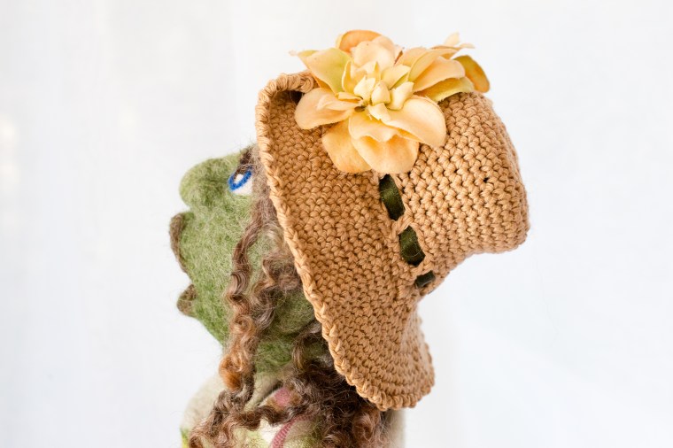 Hier an meinem Arbeitsplatz steht Ricarda Rose und trällert und singt. Wir hatten heute schon intensive Gespräche wegen frierenden, schmalen Schultern. Sie erinnerte mich – seeehr vorwurfsvoller Blick unter dem Rand des riesigen Häkelhutes mit den Riesenblüten – an einen nassgefilzten Stoff, der eine Lampe hätte werden sollen. Der doch jetzt perfekt und wunderbar um ihre Schultern… Okay, so läuft das. Ich stelle mein Atelier auf den Kopf. Finde das Prachtstück. Grabe einen Schnitt der wunderbaren Jill Maas aus, der Ricarda Rose den Körper verleiht. Mache einen Bolero. Nähe einen riesigen Knopf an. Ich sehe aus den Augenwinkeln, dass sie murmelt und nickt und an den Blüten ihrer Gartenschürze herum zupft. Also passt es. Und seitdem – singt sie. Oder übt sie? Jedenfalls schmettert sie Arien. Mit den Kohlmeisen und dem Buntspecht um die Wette, die schon rund ums Vogelhäuschen fliegen. Es könnte ja schon was da sein für die Körndlspezialisten, n’est pas? Die schmale Ricarda Rose jubiliert. Vom Herbst, der jetzt ein bisschen arg schnell kommt. Vom Häuschen, das ich jetzt ein bisschen flott putzen soll – das mit der roten Eingangstür. Weil lang, lang kann sie nicht mehr „Bin im Garten“ an der Türe hängen haben. Die Nächte sind schon sehr kühl. Der Morgennebel ist sehr feucht. Und außerdem hat der kleine Tiger-Halbstarke Leo sie aufgestöbert und maunzt sie an, dass sie endlich mit ihm auf Mäusejagd gehen soll. Wo sie doch Veganerin ist. Sieht man an ihrer Hautfarbe. Schafgarben-Buchenblatt-Wegerich-Gün. Und nur Pflanzen und Tautropfen verträgt. Eijeijei. Ein strenger Blick trifft mich. Ob mir ihr Gesang vielleicht nicht gefalle? Sie könne auch gehen und ihre Musenqualtiät in den Gartenkorb packen. Zu den schönen letzten Lilien, die sie gepflückt hat. Weil pflanzen lasse sie sich nicht. Auch nicht von mir.