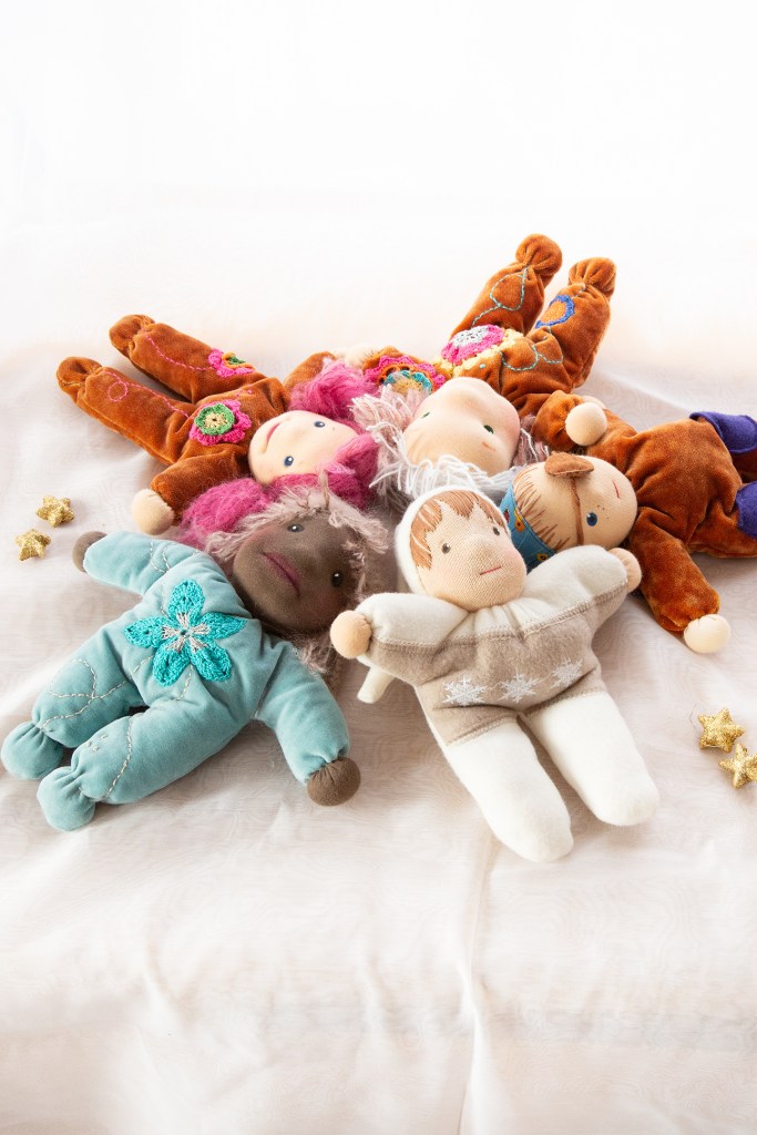 Lara begleitet mich auch schon eine Weile. Sie kam nach den Babypuppen. Ihr schlichtes Kleid, die feinen Flügelchen – sie hat etwas, das einen innerlich ganz weich macht. Sie passt in deine Hand. Und in deine Handtasche. So klein ist sie.