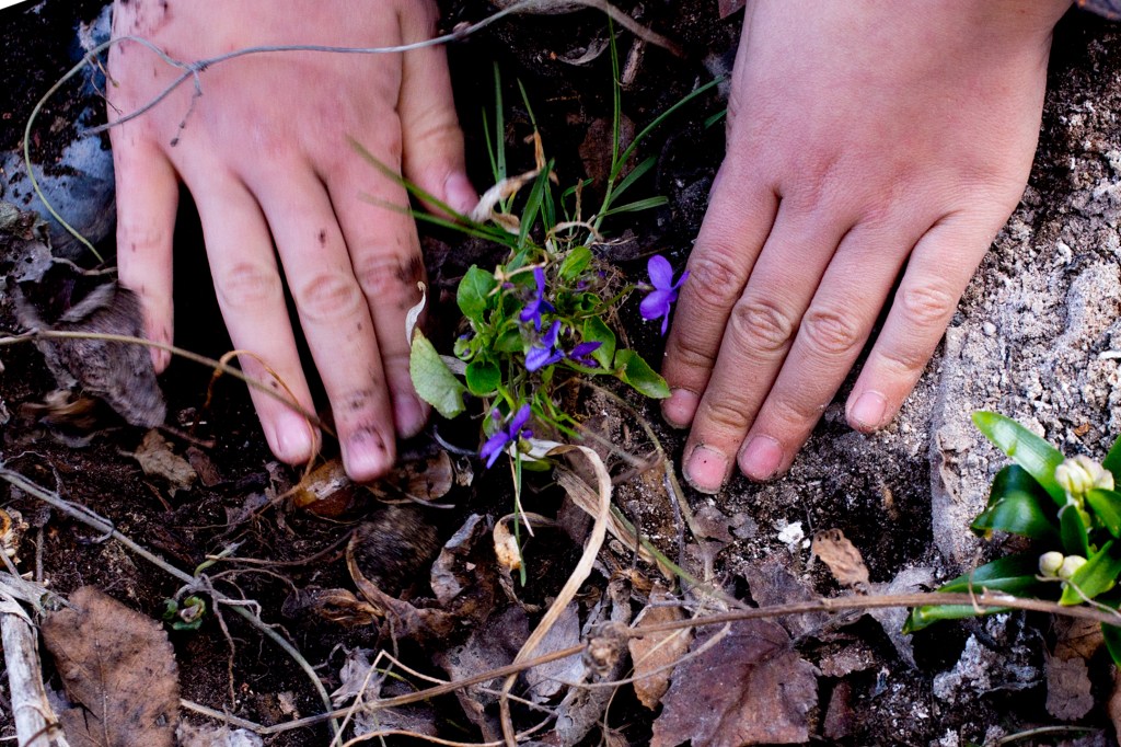 Das Tollste für mich ist zur Zeit wohl, dass wir wieder vorwiegend draußen leben. Raus aus dem Haus. Ins Licht. In die endlich wärmende Sonne. Ganz nahe an Pflanzen, am Wind, an dem zur Zeit vorherrschenden Duft der weißen Veilchen. Die Katzen erobern sich den Raum zurück, vor dem sie im Winter geflüchtet waren. Die ersten grünen Blättchen von Giersch und Portulak schmecken himmlisch. Die Hummelköniginnen würden sehr gerne im Bus neue Nester bauen. Und neugierige Rotkehlchen beäugen mit glänzenden schwarzen Knopfaugen unser Tun. Der Bus ist den Bodenbrütern für den Nestbau zu unsicher, schläft doch mindestens eine Katze zusammengerollt am Fahrersitz. Die Umstellung auf die Sommerzeit in der schulfreien Karwoche ist erträglich. Der spontane Besuch von lieben Freundinnen und Freunden ist erwünscht und willkommen. Draußen ist gut Abstand halten. Nur die Winterstiefel. Die Winterstiefel unseres Jüngsten sind bei 23 Grad unpassend. Der junge Mann wächst gerade in alle Richtungen zugleich los. Ein bisschen unheimlich, wenn die Vorpubertät von einer Stunde zur nächsten zuschlägt. Morgen ist jedenfalls vorm Baustellenbesuch Schuhe kaufen angesagt.