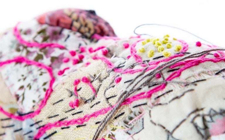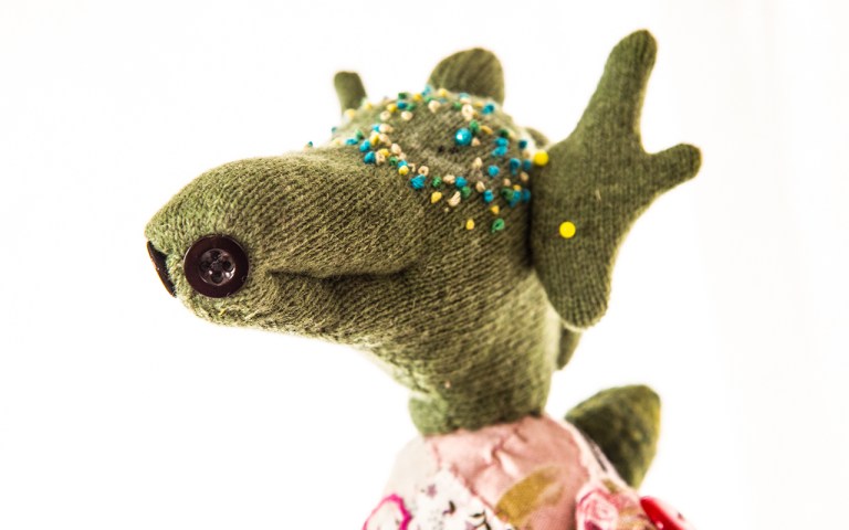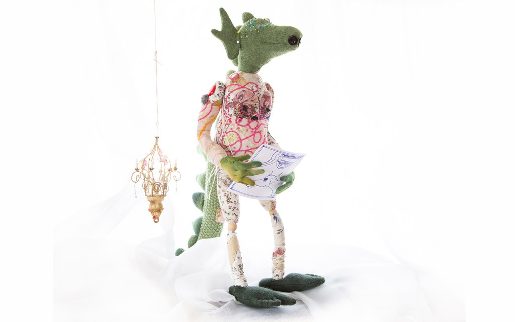 Sami liebt Sissy von der Entstehung ihres Kopfes an. Er zeichnet mir Ohren auf. Drachenohren. Alexander zeichnet mir Ohren auf. In Ordnung! Sie bekommt genial geformte Ohren, um besser hören zu können. Oder um ein bisschen auszusehen wie die Elche, die wieder in Norddeutschland einwandern. Wir schauen ihnen derzeit via Computer und in einschlägigen Dokus dabei zu. Die Knopfaugen müssen vom Kopf der Sissy wieder runter, sie passen nicht so recht. Gehören mehr an die Seite. Schritt für Schritt entwickelt sich meine liebenswürdige und manchmal gefährliche Drachin. Die Stickerei am Körper, am Kopf macht mir riesige Freude. Egal, wie lange es dauert. Ich habe immer wieder zwischendurch Zeit, ein paar Stiche zu machen. Tiefer ins freie Sticken einzutauchen. Perlen hinzuzufügen. Und wenn es den ganzen Sommer dauert, dann ist es so. Free Motion Embroidering wird immer mehr zu einer Form der Meditation für mich. Ich habe die besten neuen Ideen, wenn ich durch die Tätigkeit im Denken verlangsamt und aufs Tun reduziert hier sitze und Stich für Stich mache. Danke noch einmal liebe Helen, dass du mir diese Tür gezeigt hast! Das hat etwas verändert…