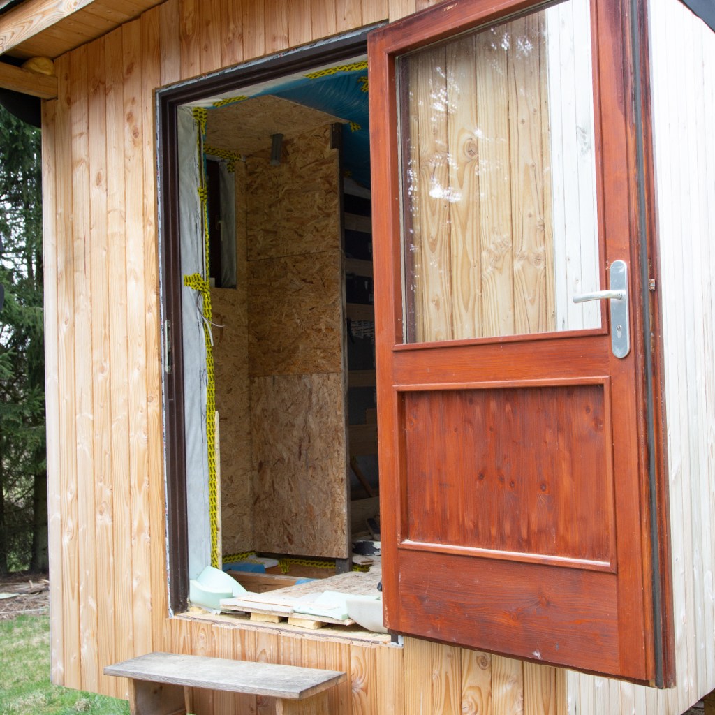 Busausbau, beispielsweise. Als uns Georg Fotos von seinem ausgebauten Dachstuhl im Tiny House schickt, entscheiden wir uns. Eine Baustelle zum Angreifen, zum direkten Austausch. Ein Mensch in echt, den wir fragen können. Ein Bettgestell muss innerhalb von Stunden in den Bus rein. Das Allernotwendigste wird in Kisten unter dieses Bettgestell geschoben. Juhuuu, die alten schönen Holzladen vom kleinen Auto passen ebenfalls hinein. Und dann nix wie hin zur Baustelle. Wir fahren bis an die tschechische Grenze, die wir zum ersten Mal seit so vielen Jahren nicht einfach so überqueren dürfen. Kaffee trinken bei den Nachbarn. Wir lieben das. Ein ziemlich komisches Gefühl, es gar nicht erst zu probieren. Im nördlichsten Waldviertel fühlt es sich allerdings schon recht nordslawisch an. Jaja, ich halte das aus, wenn ich jetzt wieder Prügel beziehe. Ich liebe zweisprachige Ortsschilder. Ich liebe Regionen an politischen und kulturellen Grenzen. Da fühle ich mich zu Hause. Jede Zelle meiner slawischen Wurzeln jubelt. Die Häuser werden immer kleiner und das Land immer menschenleerer. Der Frühling ist auch noch nicht so richtig ausgebrochen. Die Besichtigung der Baustelle hilft vor allem Alexander riesig weiter. Danke Georg für deine vielen guten Bau- und Material-Tipps. Einiges ist jetzt noch klarer als vorher. Und danke für das feine vegane Abendessen am offenen Feuer! Ich freue mich darauf, wenn du mit deinem Haus an dem Platz landest, den du liebst!