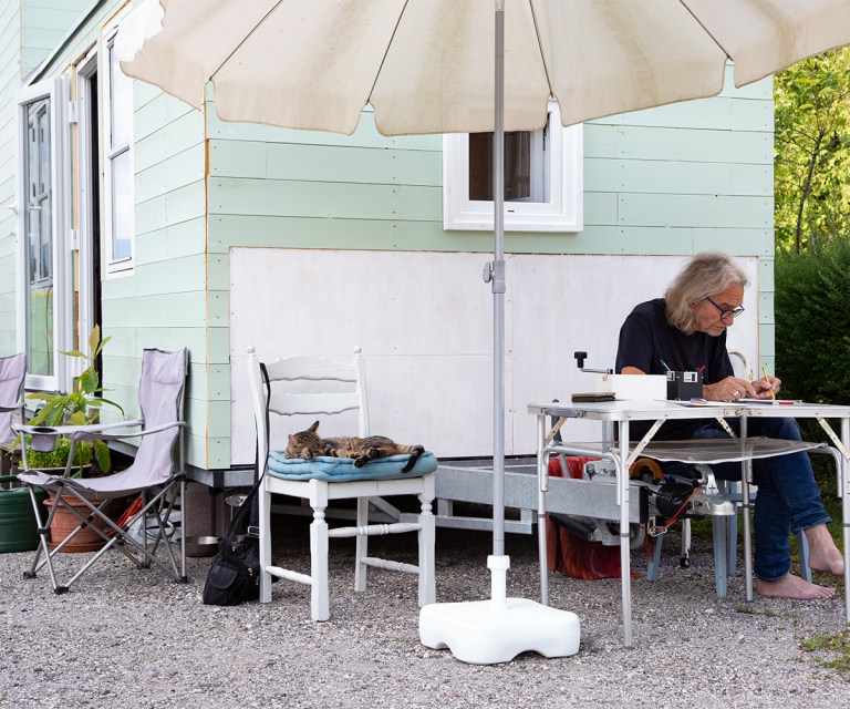 Diese Woche feiern wir hier nicht nur Alexander’s Geburtstag. Es ist auch die Geburtsstunde des zweiten Tinyhouses, meines Zirkuswagens. Wir tüfteln beim Frühstück im Garten an der Umsetzung der neuen Bodenplatte. Der Fixierung am Rahmen und der besten Dämmung, die wir nun in neuer Umgebung suchen und besorgen werden. Ich habe es vermutlich schon erwähnt – unser neuer Bauplatz ist zehn Gehminuten von uns entfernt. Die Tage des Nichtbauens haben uns entpannt und für das Kommende gestärkt. Jetzt geht es weiter.