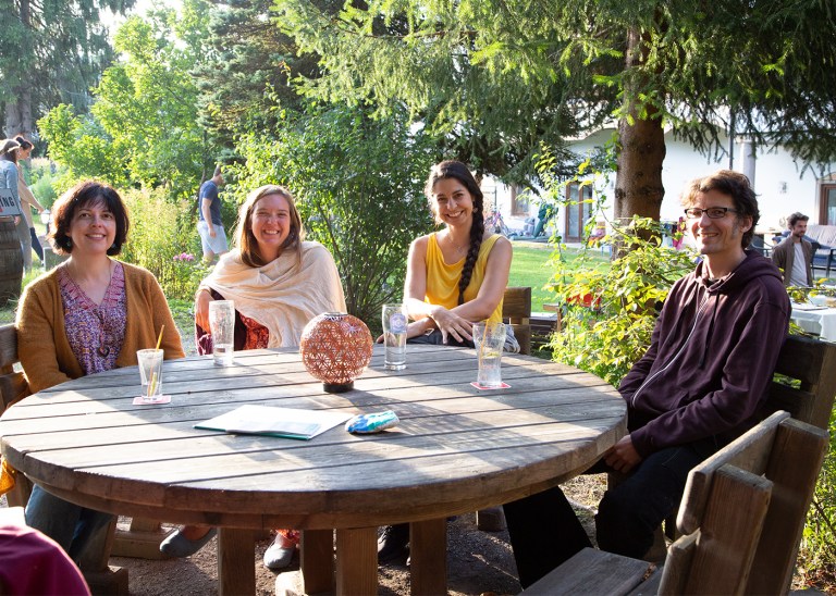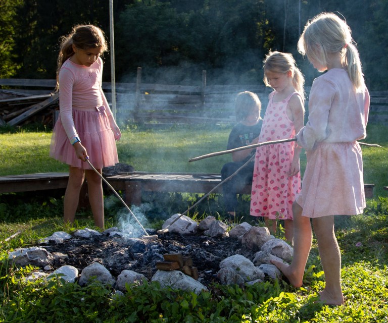 Vor fünf Wochen sind wir mit Haus und Bus, Atelier und Nötigstem, Kind und Katzen hier eingezogen. Es war eine dieser „Springen! Und los!“-Entscheidungen. Ich übertreibe nicht, wenn ich sage, es hat noch keinen Tag gegeben, an dem ich diese Entscheidung bereut habe. Ganz im Gegenteil. Ich bekomme Herzklopfen, wenn ich mich diesem alten Hotel nähere. Es zieht mich „nach Hause“, wenn wir in der Umgebung unterwegs sind. Es ist aufregend, mit den Menschen der bestehenden Gemeinschaft auf einer tieferen Ebene näher zusammen zu rücken. Genauso finde ich es fein, Menschen für wenige Stunden kennen zu lernen, wenn sie via App für eine Übernachtung am Parkplatz landen. Oder wenn wir uns ein paar Tage oder ein paar Wochen intensiver begegnen, wenn sie hier ein Volontariat machen. Und ich freue mich so über die vielen Besucher*innen, Interessierten und Fragenden. Immer noch werden wir viel und gern zum Bau des Tinyhouses befragt. Sami taucht immer wieder mitten in einer Horde von Kindern auf. Egal ob am Lagerfeuer, im Teich oder quer durch das Hotel. Wie schön das ist. Ich lebe mitten in einem Traum, den ich mir vor zwanzig Jahren von der Seele geschrieben habe. Der es nicht zum geplanten Buch bringen wird. Meine herausragendste Kunst ist die Kunst, dieses Leben gut zu leben. Ein einfaches, gutes Leben, das von meinen Träumen und von meinem Herzklopfen ganz wunderbar dirigiert wird.