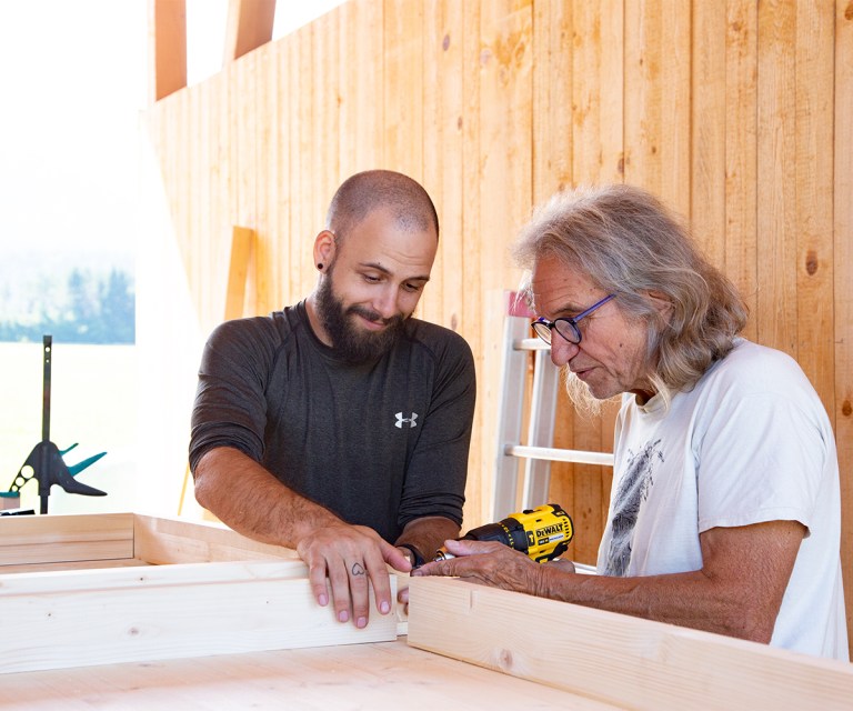 Die Bodenplatte meines Zirkuswagens hat Form angenommen. Dank der geschickten Hände meines Liebsten und meines ältesten Sohnes. Dank Helfern. Es hat etwas absolut magisches, wenn du als zukünftige Bewohnerin in den Prozess hineingeholt wirst. Weil du mitentscheidest, wo später die wunderschönen Fenster hinkommen sollen. Die Lichtleiste für das Licht von oben. Wo ungefähr die Trocken-Trenn-Toilette mit Lüftung hin soll. Unauffällig und effektiv. Wo die Garderobe für die Kleidung. Wie breit dein Bett sein wird, wie hoch. Und was das für Auswirkungen auf die Anordnung des seitlichen Fensters hat. Das tiefe Waschbecken für meine Färbe- und Teeküche, wo gehört das idealerweise hin? Und wo um Himmels Willen der Balken für den Hängesessel meiner Miniterrasse beim blumengeschmückten Eingang, den ich schon förmlich riechen kann? Herzklopfen. Ungeduld und überschäumende Freude beim Bau dieses Objektes. Dieses Mal ist viel Vorfreude da. Nicht dieses distanzierte Gefühl, mich in einem Youtube Tutorial zu bewegen, das ich mir nur anschaue. Die Männer scherzen und lachen, weil gewisse Handgriffe vertraut sind. Und sie sich zurecht viel mehr zutrauen als im ersten Durchgang des Bauens. Vielleicht auch, weil sich dieses Mal mehr interessierte Menschen melden, die mitbauen wollen. Learning by doing.