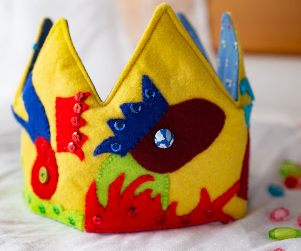 Meine derzeitige Schaffensphase wird gerade von Schöpfungskronen veredelt. Sie entstehen aus dem verspielten Tun mit einer kreativen Frau, die sich dem Traum von Buntheit und Glitzer und Erschaffen vollkommen hingibt. So wie ich. Ihre entstehenden gestickten Bildgeschichten sind es, die mich erinnern, dass es Geburtstagskronen für Kinder gibt. Der Widerstand, etwas mehr oder weniger „Sinnvolles“ und „Zweckmäßiges“ herzustellen bricht schnell in sich zusammen, als wir erste Ergebnisse vor uns liegen haben. Textile Wesen auch hier. Dieses Mal zweidimensional. Meine Mitgeherin ist noch skeptisch, ob sie überhaupt in der Lage ist, etwas thematisch umzusetzen, was von außen kommt. Ich bin schon mitten im Durchdenken der ersten Aufträge für Kinderkronen. Der Spruch „Hinfallen. Aufrichten. Krone aufsetzen. Weitergehen“ begleitet mich. Schöpfungskronen für Erwachsene. Bilder in meinem Kopf gibt es wie immer genug…