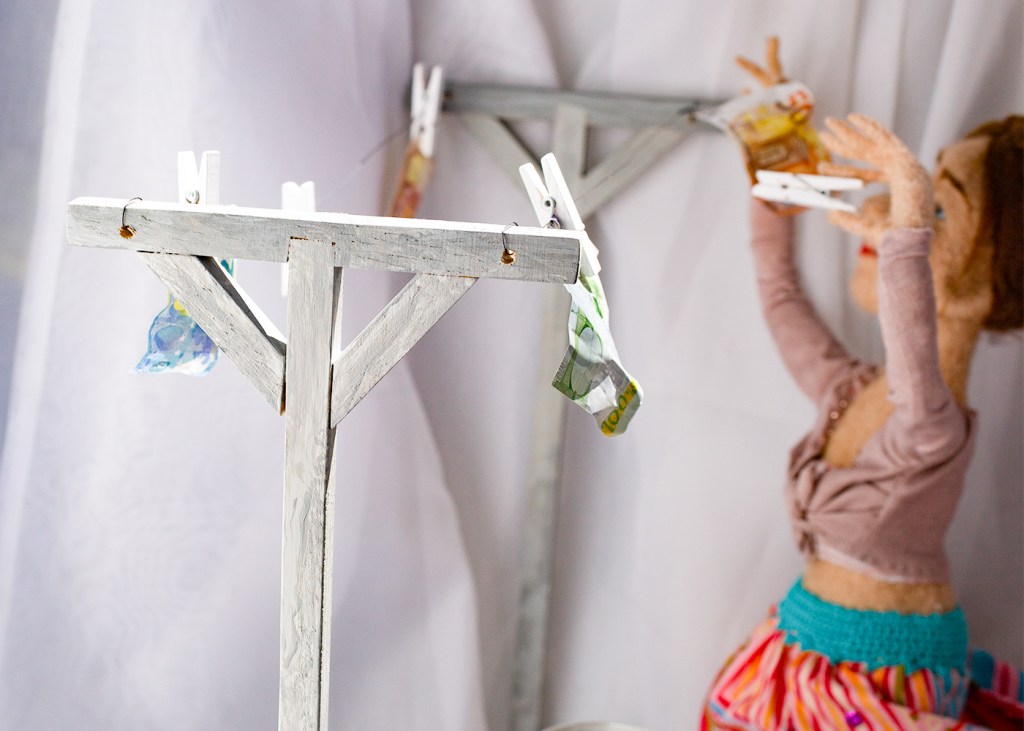 Die Scheine werden auf Zehenspitzen hinter dem Haus an die Wäscheleine in den warmen Wind gehängt…