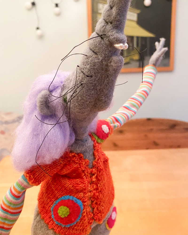 Esmeralda. WIP. Noch auf meinem Werkstättentisch. Die letzte aus der Serie der gefiltzen Rättinnen. Demnächst im Shop!