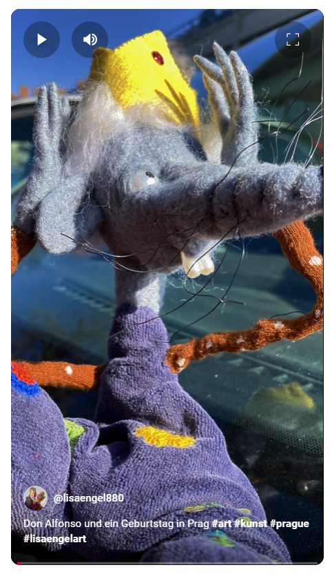 Ich habe mir dieses Wochenende vorgenommen, endlich eine meiner Figuren mitzunehmen und in Filmsequenzen einzubauen. Das wäre jetzt die zweite Werbung. Dieses Mal in eigener Sache. Don Alfonso sitzt in meiner bunten Tasche und schaut oben heraus, als ich meine Tochter auf eine Badeperle einlade. Die junge Verkäuferin flippt fast aus. Wer den süßen Kerl gemacht hat, will sie wissen. Und wie er heißt und warum er hier ist. Und ob das wirklich filzmodelliert ist. Weil sie kennt sich aus! Ich bin so perplex, dass mir fast das bisschen Englisch aus dem Gesicht fällt. Sie kann dafür nicht mehr rechnen, erzählt, dass sie selbst Kunst studiert und solche Figuren so toll findet. Und ob ich auch Handpuppets mache, die fürs Theater.