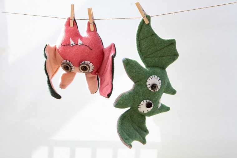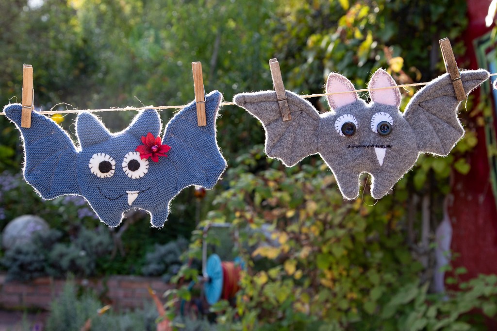 Ich liebe sie, die bunten fliegenden Hunde aus upgecyceltem Strickwalk. Meine sind ungefährlich handwarm, kuschelig, gewaschen und liebevoll handgemacht. Ihr Eckzahn bewahrt vorbereitete Osternester vor vorzeitiger Plünderung. Sie passen in Handtaschen, Rucksäcke und Jackentaschen. Bandit und Co. sind bei längeren Wartezeiten ideale Spielgefährten.